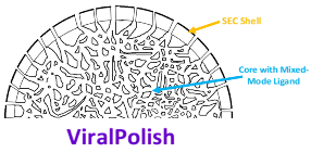 BioToolomics has developed ViralPolish™ 7000 chromatography media for purification of medium to large size viruses, exosomes, clearance of nucleic acids (up to 1kb). The bead has an inert size-exclusion shell and mixed-mode ligand in the core.